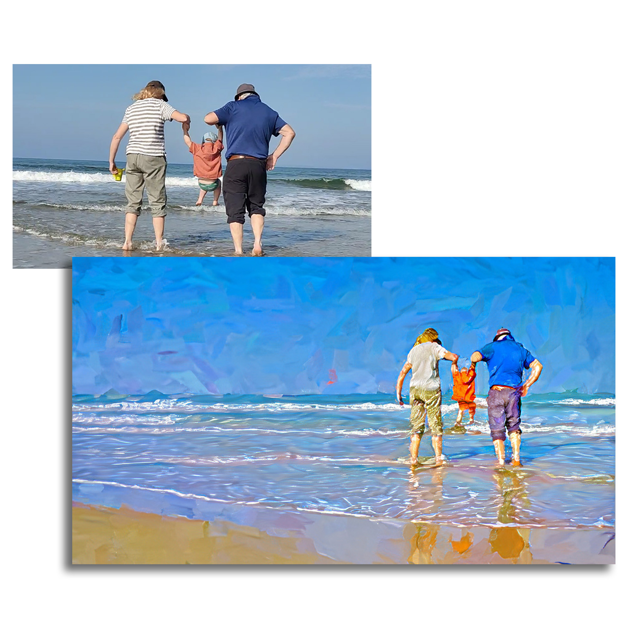 Our artist use a variety of vibrant colours and different digital brushes to transform your photo into a beautiful digital oil painting.